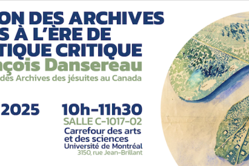 « Mobilisation des archives coloniales à l’ère de l’archivistique critique » claudiapolledri·29 octobre 2025 Conférence de François Dansereau (directeur des Archives des jésuites au Canada) 5 novembre 2025, 10h00 - 11h30 Université de MontréalActualitésÉvénements Cycle de projections : Que peuvent les arts pour la paix? claudiapolledri·14 octobre 2025Cycle de projections : Que peuvent les arts pour la paix?17 octobre 2025, 14h00Université de MontréalActualitésÉvénements